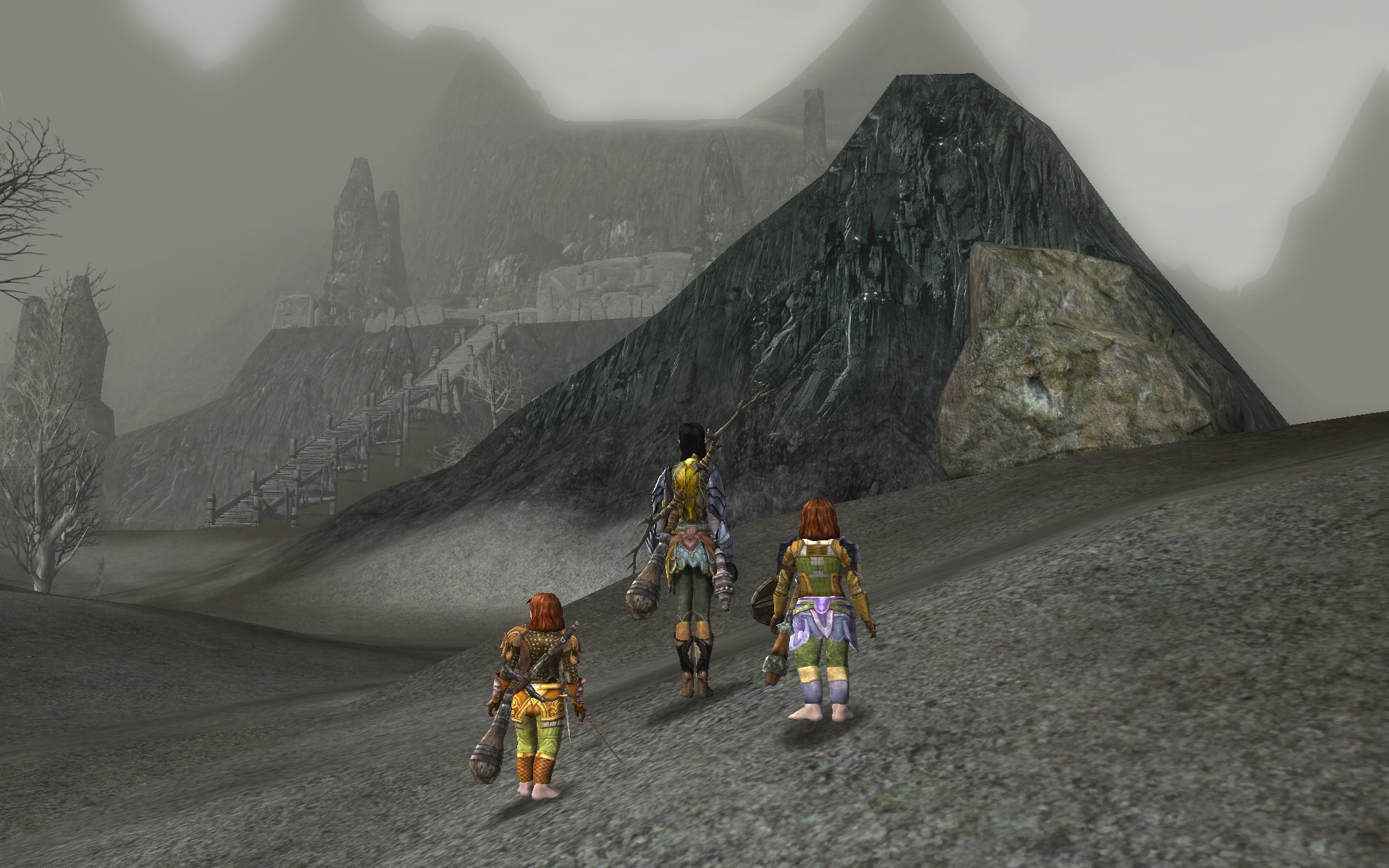 A friend of mine berated me the other day for only ever showing him posed scenery shots of LOTRO, and never tempting him with action shots. So I decided to combine today's exploration of eastern Angmar with a little shutterbugging, and as I quite liked some of the piccies I thought I might as well share them with everyone... 8-)