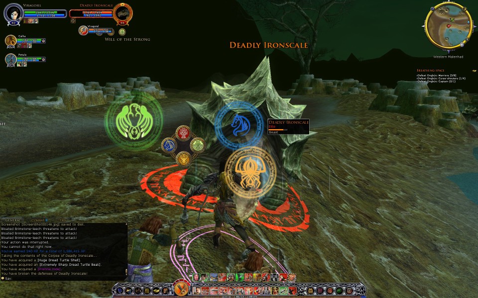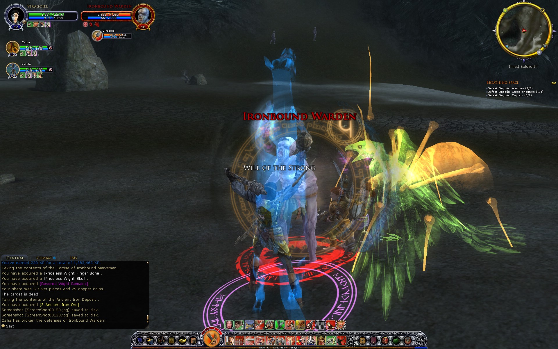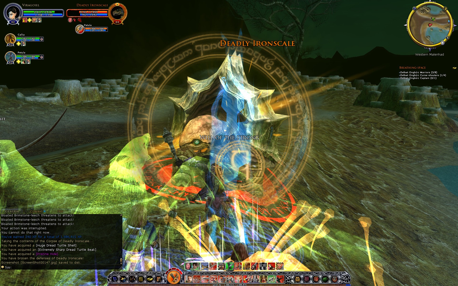 Another shot of 'Will of the Strong' going off, and, judging by the group's position and the mob's expression, I'd hate to think where the Hunter's last arrow went!